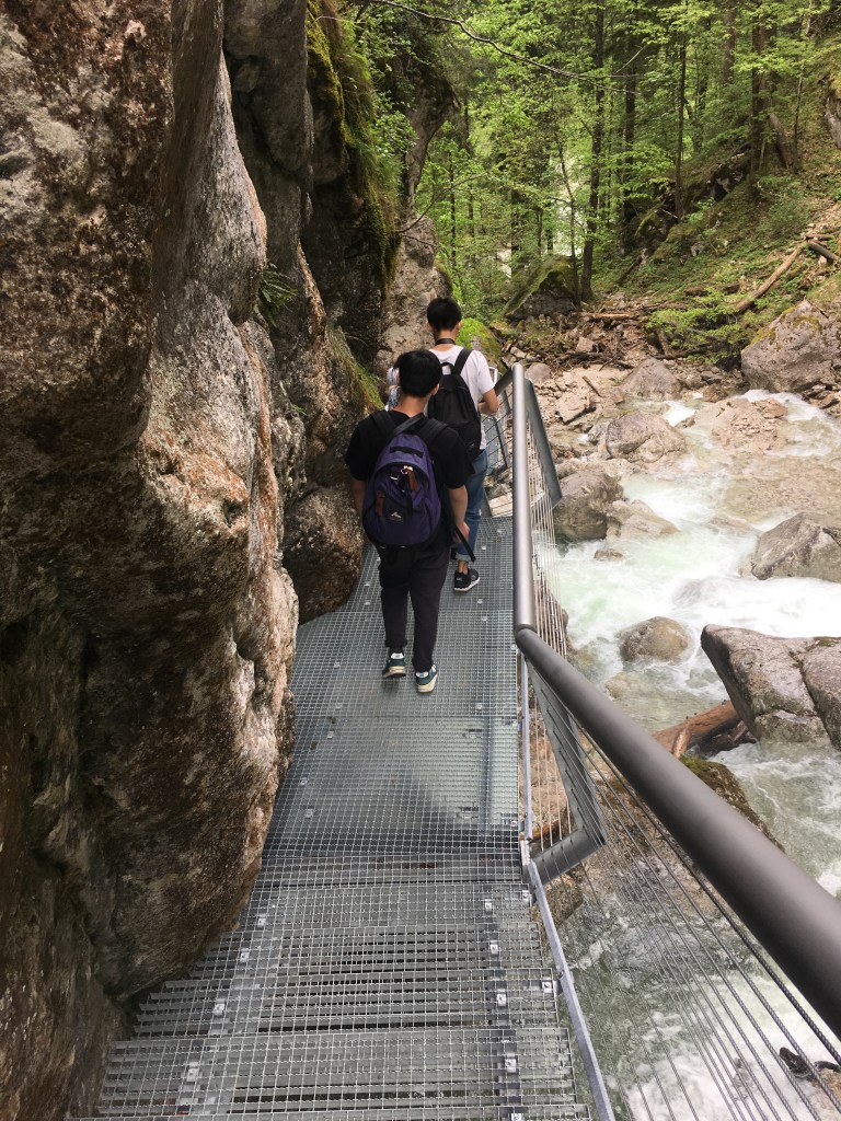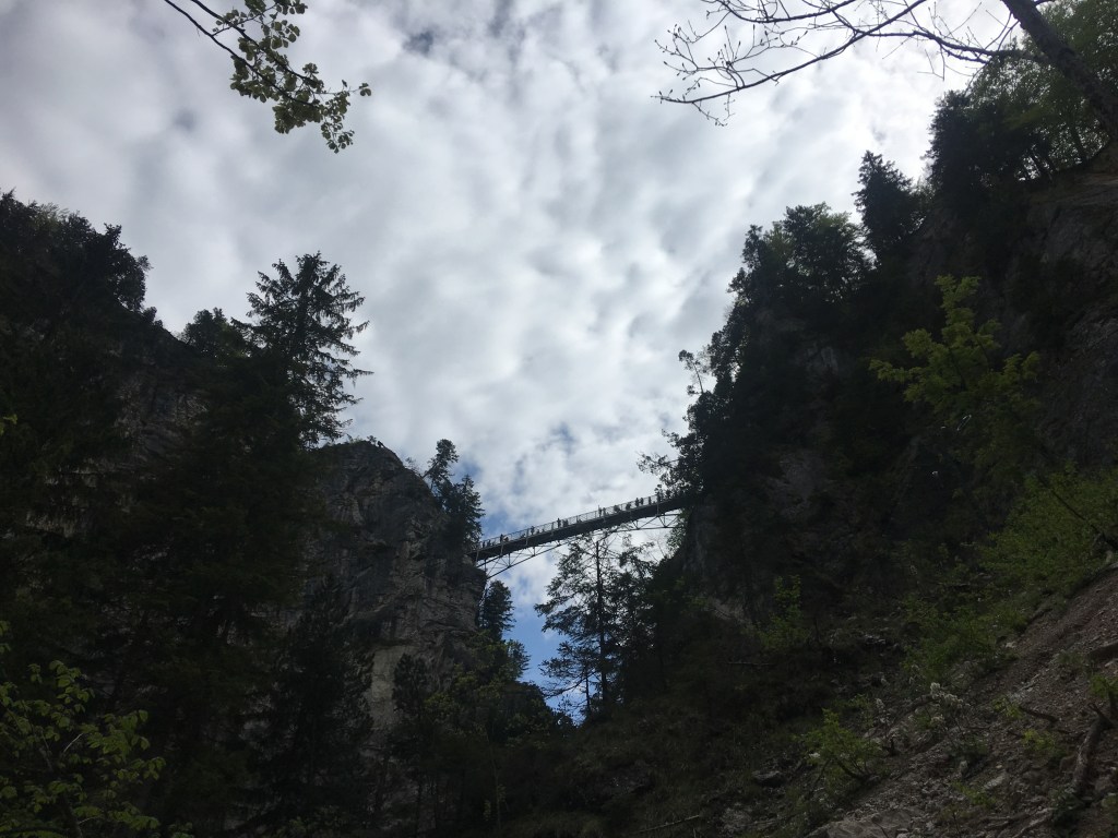 Half an hour later, we’ve become dots down in the ravine too, having chosen it over a tour of Neuschwanstein. This is the Pollat Gorge, carved by its namesake river and the waterfall we saw earlier on the Marienbrucke. The latter is even more impressive up close, its throaty growl never softening nor ceasing, the water smashing onto the rocks like the vengeful fist of God. It kicks up a fine mist that casts a fuzzy (dreamy?) veil over everything, and makes the rocks glisten in the late afternoon sun. As I make my way to the edge, I can feel my feet complaining from the steep climb down, and the hairs on my skin prickling from the sudden drop in temperature that the spray’s brought — but nothing compares to the fact that right now, I am surely staring at the mother of all waterfalls.