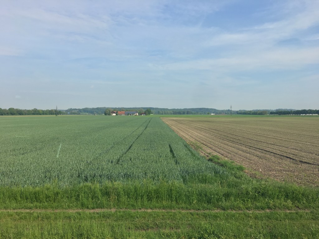 As we head towards our first stop, just outside the Airport, I feel a sense of familiarity as the tracks diverge and we become the only traffic on our track. The buildings recede, the woods thicken, and the people magically vanish as Munich recedes from view. Now the fields of Bavaria return, neatly arranged, the golden bare soil of the earthy sections alternating with the lush green of leaves. The German obsession with efficiency and neatness, in full display.
