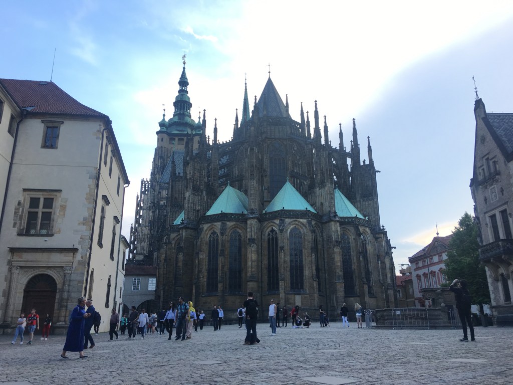 Security check over (during which Wilson gets a rather unnatural amount of scrutiny), we head inside Prague Castle, home to countless cathedrals, numerous chapters of history, and the President of Czechia. I know I ramble a lot in this journal, but a small practical tip for those of you planning to visit Prague: the Castle is much more worth it after closing time at 6. Most of the tourists are gone, and the exhibits are closed for the night, but as the courtyards themselves are open till 10, there’s still plenty to explore and see in this massive castle — and best of all, the Golden Lane is free in the evenings. I feel a little sorry for the shopkeeper at number 22, a bored Czech girl with almost impeccable English. Every thirty seconds, she has to explain to some curious tourist how the commonly-repeated story that a certain Czech writer lived there is simply not true. “This is actually Kafka’s sister’s house — he visited this place on and off for two years, he may have written some short stories here while he was resting here.” Dennis and Wilson are unfazed by this revelation, and buy copies of Kafka for the friends back home.