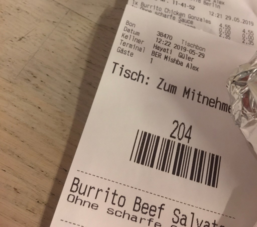 Lunchtime. Our friend Zoe, who spent an extraordinary amount of time in Central Europe last year, has WhatsApped to tell us about this amazing burrito place that is hidden somewhere underneath Alexanderplatz station. (Food to Zoe is basically what buses are to Dennis.) What appears to be a simple task of locating a restaurant quickly turns into a nightmare as the monstrous size of the station — and its unnavigability — becomes apparent. Besides the S-Bahn station on the surface, a U-Bahn station also exists, and it’s connected to the former only by a hidden side door IN THE BASEMENT. Once we’re underground, the identical turquoise facades send us going round in circles: we can’t even find our way around, much less a restaurant which we don’t even know the name of. Eventually, quite by chance, we bump into the very store Zoe mentioned right next to a McDonalds takeaway. Perhaps the hunt has whetted our appetites, but there’s a certain thrill to seeing our larger-than-usual burritos being prepared, in a sideshop of the metro.