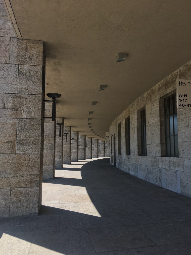 Germany has a reputation for enlarging everything, but this is beyond belief. Before me is the Berlin Olympic Stadium, capacity 74,000, dimensions 300 metres long by 225 wide, cost of construction a whopping €300 million in today’s money. Everything about this place is supersized, right down to the entryway: being one of the largest stadiums in the world, it naturally comes with what has to be one of the world’s largest carparks. It takes me a good five minutes and more to walk from one end of the mostly empty carpark to another. Perhaps it’s the size, but walking up to the huge twin towers that guard the entrance, I find it a little odd that almost nobody’s here on such a beautiful day — and a public holiday, to boot.
