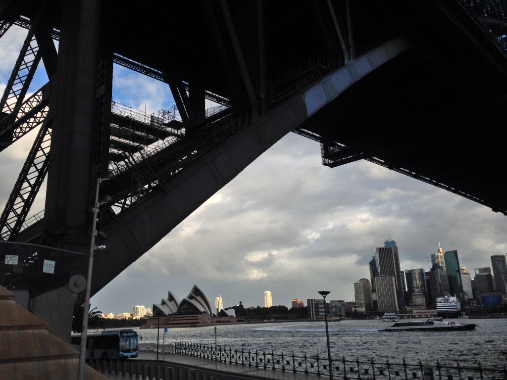 First, there’s the Opera House. One would expect a bridge called “the Sydney Harbour Bridge” to offer spectacular views of said harbour, and this one delivers so, so much. Even if you have an unhealthy obsession with the Opera House like I do, it’s mighty hard to capture its full majesty if you’re not viewing it from, say, the opposite shore, or in mid-air. The Opera House NEEDS water to complement it, it doesn’t feel complete without the blue of Sydney Harbour around the sides — and the Bridge provides you with a perfect opportunity to fill in that gap. Watching the ripples dance on the dark water, you can see why the Opera House works so well with the Harbour: the former flows so well, it seems to become one with the sea.