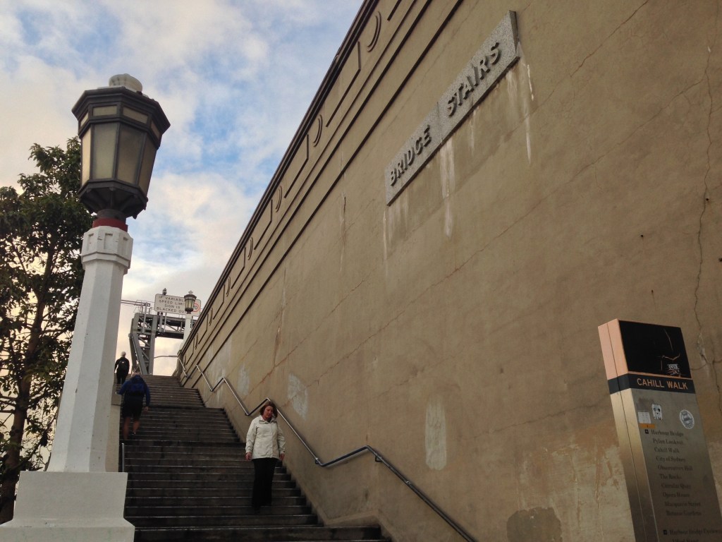I’m about a third of the way through when I start to regret not taking the train. The distance is one thing: two kilometres sounds not a lot on paper, but you try walking for six hours straight and then add a never-ending bridge to the mix. But even worse are the other, non-footbound users of the bridge: besides the North Shore line running along its edge, the Coathanger also hosts EIGHT lanes of traffic. On a Monday afternoon like this, cars and lorries and motorcycles are all thundering into the city, only a few feet away from the pedestrian walkway. This also means that any person foolish enough to walk the length of the bridge gets ten lanes’ worth of noise and pollution, which is at least nine too many. It is a genuinely stressful experience, and by the time I reach the first available exit me and my legs have had more than enough. I am prone to exaggeration, but it’s not hyperbole to say that this experience might have cured me of my romantic ideas about bridge-walking, once and for all.