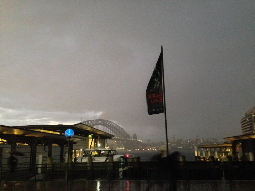 We’re just in time to catch the last few rays of sunlight as we reach Circular Quay. I still haven’t gotten the hang of pictures that show my face, but Amy is kind enough to give me some pointers. A passer-by kindly takes our picture together: under the dim yellow glow of the streetlamps, it feels like a scene from “La La Land”, just with marginally less dancing. Then it begins to rain: not miniscule droplets like we encountered in Katoomba, but driving, pouring rain, the type that makes everyone run for shelter and clears out Circular Quay in seconds. For the first time, the Harbour turns monochrome, and a blanket of grey sweeps the horizon.