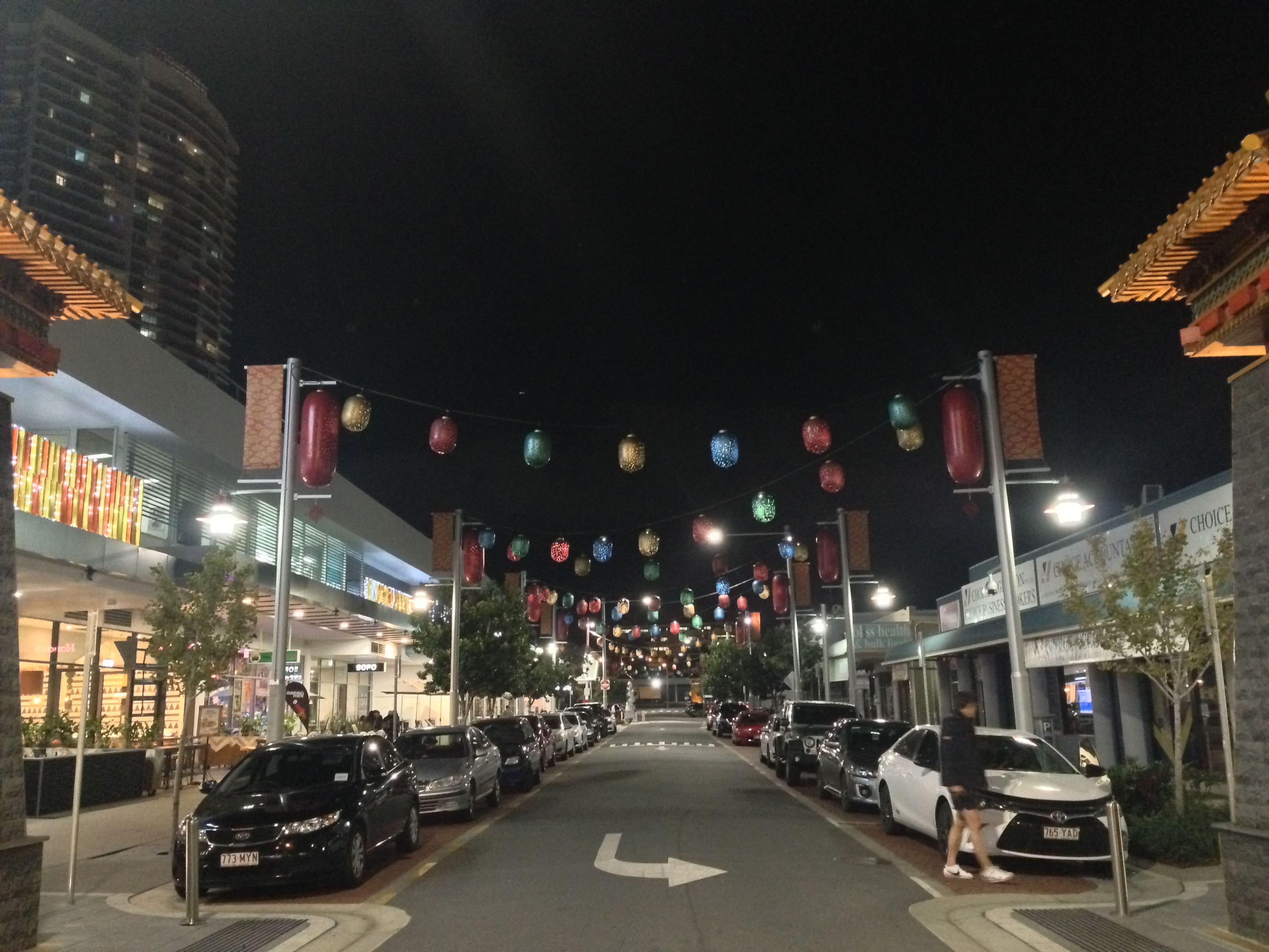 Seven o’clock. Alight at a completely deserted Southport, three more stops up the line. Gold Coast may have been disappointing so far, but I’m not giving hope just yet — if only the city would play along. This place, formerly a major port for Queensland, is supposedly the city’s central business district, yet I and another commuter seem to be the only living souls around. Looking down the main street of what is marked “Chinatown” on my map, I see it festooned with Chinese lanterns, but the street below it is so empty, it’s almost agonizing to watch. There’s only one restaurant around here that seems even interested in doing business: a mixian store with humongous servings, the sort where they slaughter the whole pig and throw in everything edible. It’s so spicy that I have to blow my nose with every bite, but apart from that it’s actually not bad — and after an afternoon of disappointments, a mediocre dinner is a relief.