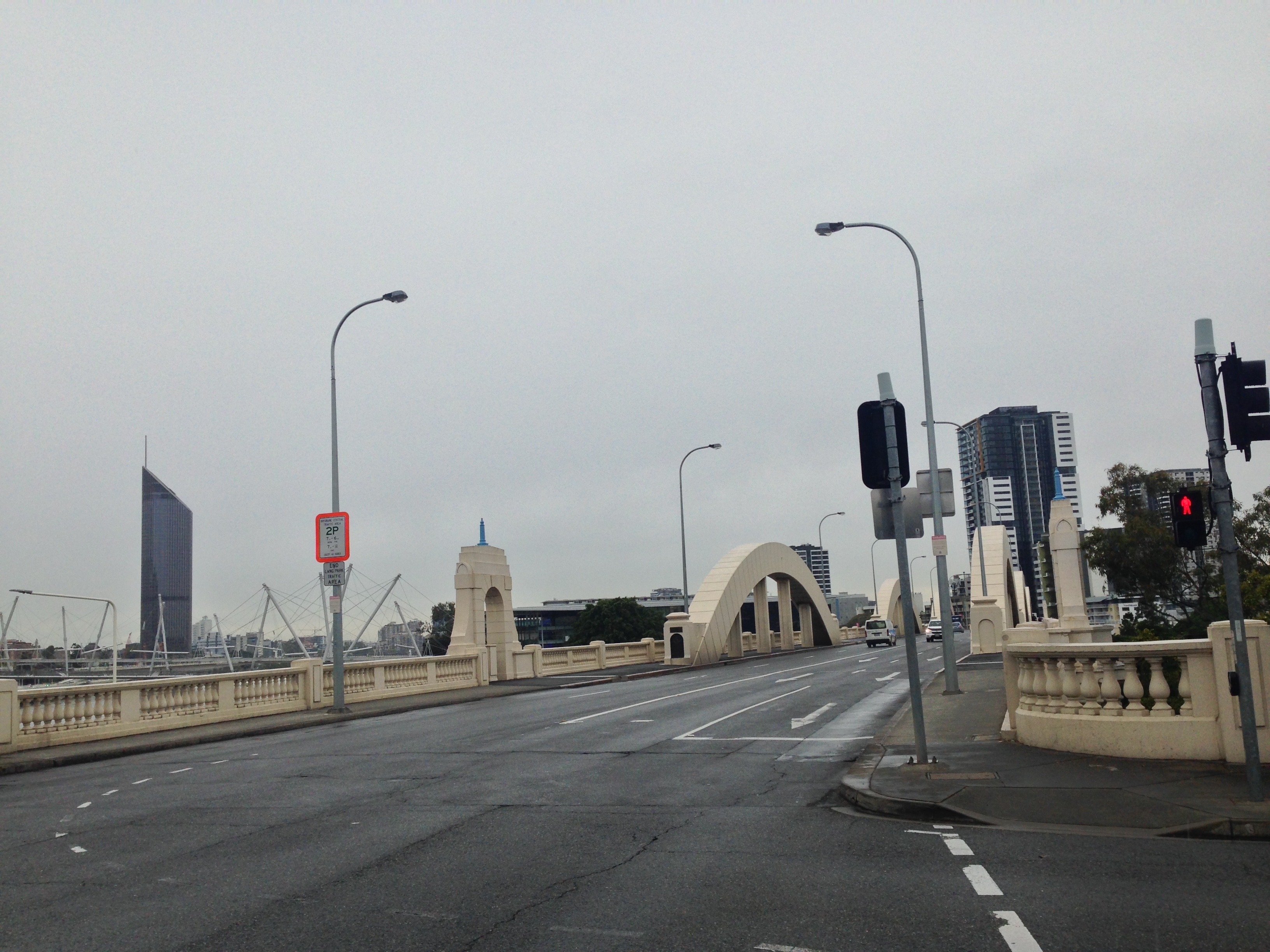 It’s too early to have lunch — the smell of toast from this morning is still fresh on my hands — so I decide to have a bit of a walk after settling in. Turn away from the hill and head toward the city centre. Brisbane is a complicated city: built around the river that gives the city its name, it weaves and bends around the river’s many curves. This means two things: the city has a staggering amount of space, and navigation is nigh impossible. The first thing I see is the William Jolly Bridge, a large steel bridge that they’ve somehow wrapped in white concrete. A few signs the size of a small bar of soap inform me of who he was (it’s slightly disappointing to discover that he was Lord Mayor of Brisbane, and not a comedian or a clown); more jarring, though, are the signs reminding people not to jump from this bridge.