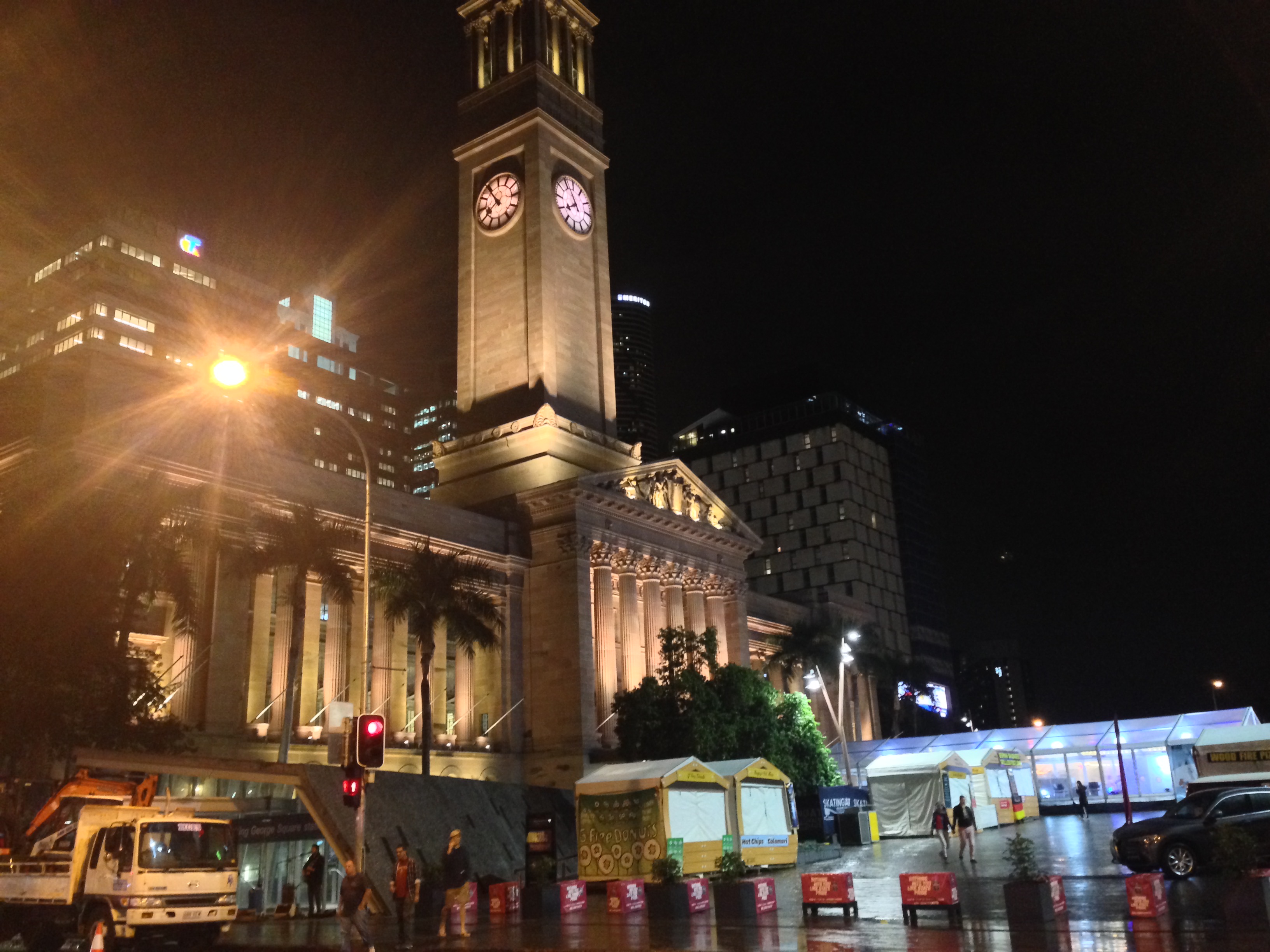 Cross the bridge, and a livelier side begins to assert itself. Brisbane appears as two cities at once: even though the predominant sound in Brisbane Square is still the roar of motor engines, a faint hustle and bustle begins to be heard as I step away from the river. In contrast to the stylish sterility of Southbank, the Northbank (is that a thing?) is unabashedly upmarket and lively. Stump grumpily past the Treasury Building on my way inland, taking a moment to note the mishmash of people walking in to gamble — then as now, the Treasury is used for money transactions. Odd to think that a government building can be used so unashamedly for pleasure, but then again Brisbane is a place of strangeness.