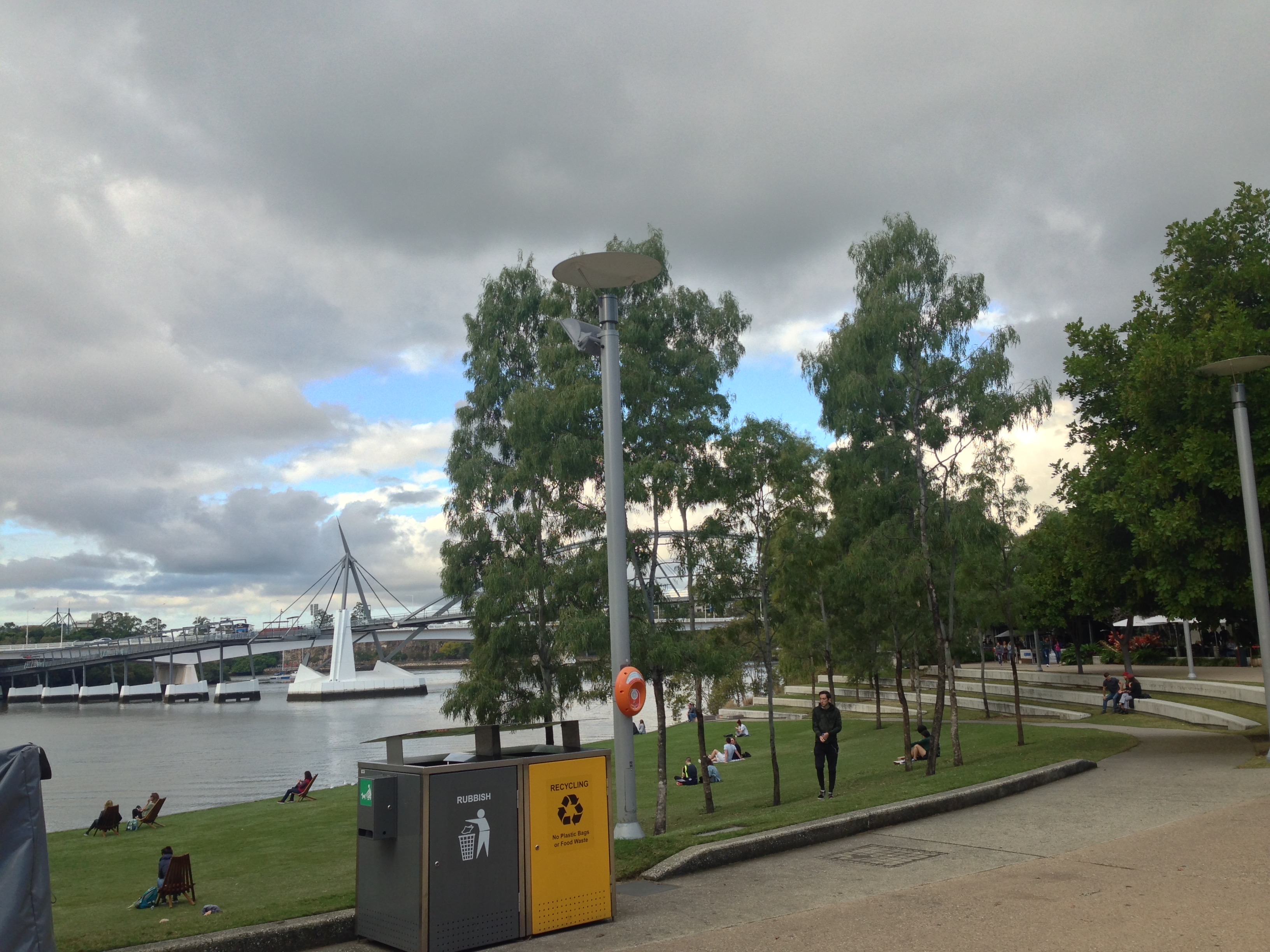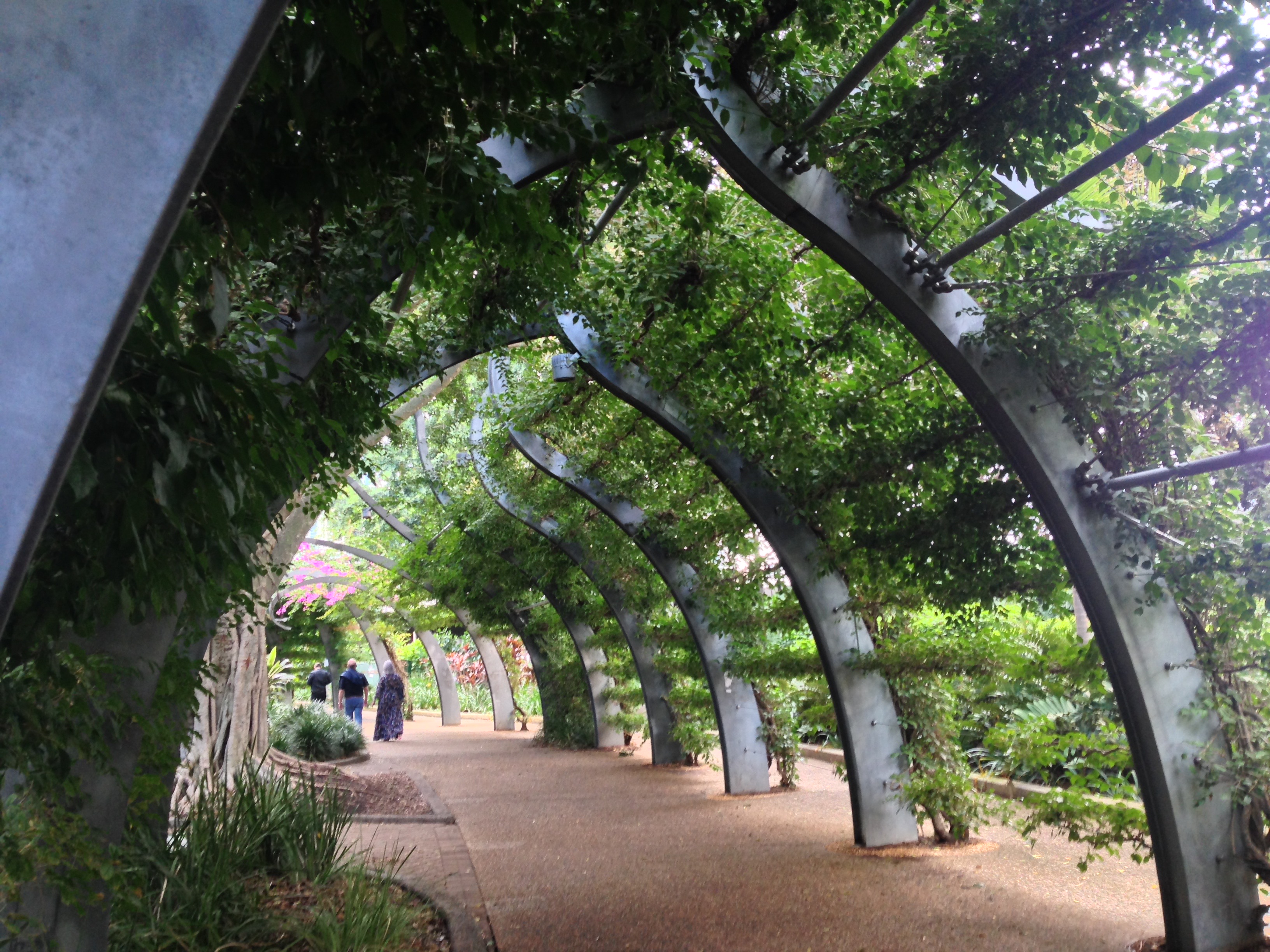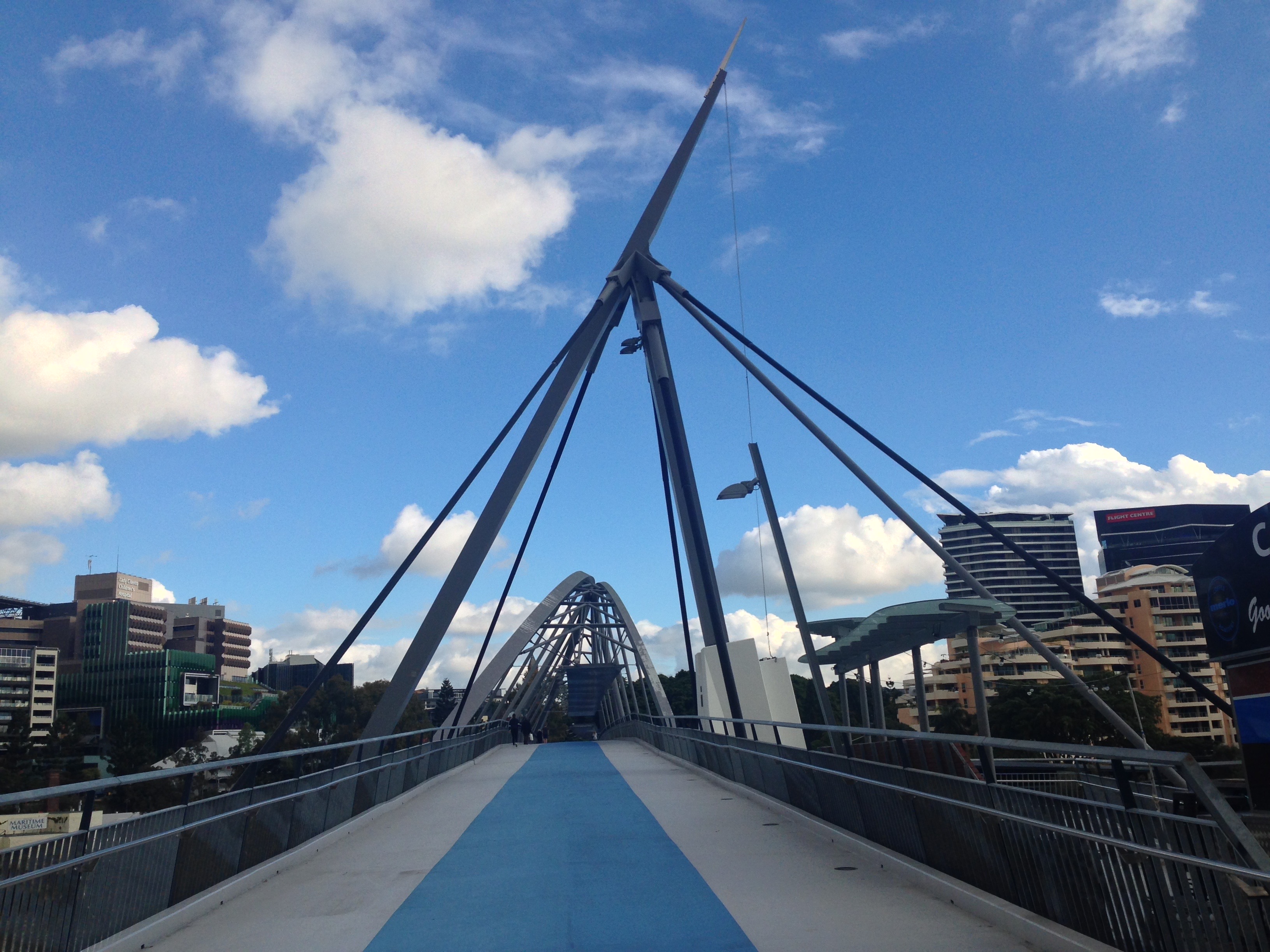 After lunch, we split up. While she waits for entry to the austere Queensland Parliament, I stride off across the city’s Botanic Gardens, described evocatively by Google Maps as “a riverside oasis for plants and recreation”. No mention of the people, and it’s not exactly clear what kind of recreation they are referring to either. It’s quite small and slipshod for a city’s botanic garden: very well taken care of, but shockingly sparse. What little there is seems to be there for show, more greenhouse than arbour. It only gets interesting near the back entrance, as the trees grow dense and a winding path leads through what might very well be a proverbial dark wood from a children’s book. (On a plaque near the back entrance, I read the words “the majority of plants have been transferred to the Toowong Gardens”. A whole forest’s worth of flowers?) Then down the riverbank and stride across the Goodwill Bridge, another of Brisbane’s wonderful river crossings — except this one is easily the freakiest of them all. Not only does it have this strange War-of-the-Worlds type tripod thing sticking out halfway, it’s also wonderfully modern compared to everything around it. The fact that the cyclists get the central pathway, shunting pedestrians to the side, only makes this bridge the more weird and wonderful.