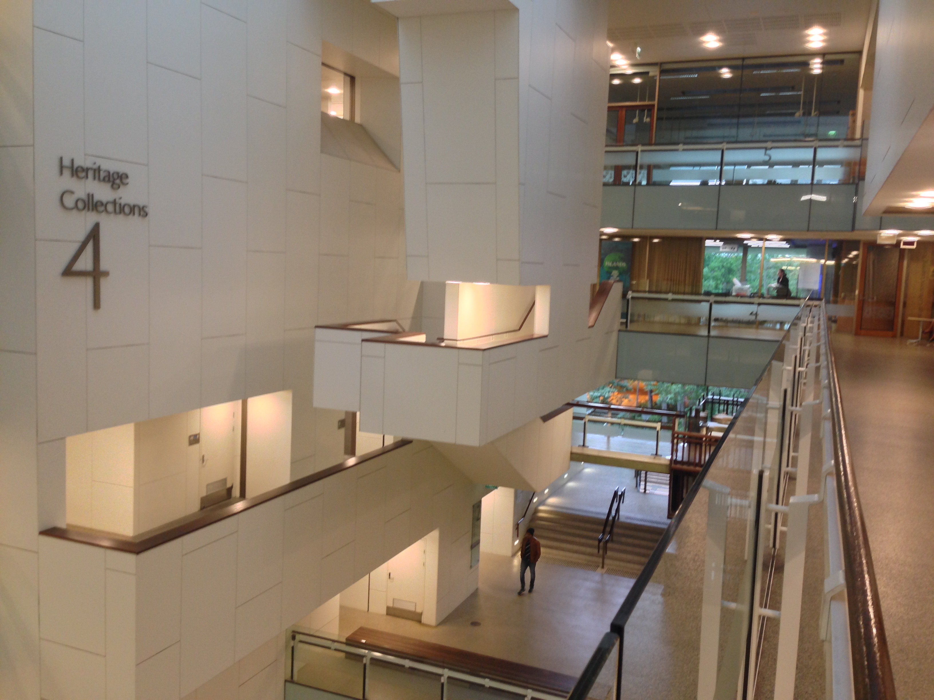 As the afternoon stretches on, I find myself back at the South Bank precinct and the State Library. Now that I’m not focusing so much on how wretched I am, I have time to admire the building itself: unlike its counterparts in New South Wales or Victoria, Queensland’s State Library is thoroughly modern and sleek, its green glassy façade and its airy portals to the world an overt statement of how it moves ahead with the times. It looks much more like a modern library inside as well, none of that wooden panelling and domed structures you see in Sydney or Melbourne. Here everything is the face of fashionable modernity: couches, powerbanks and amusingly-shaped tables line the main reading rooms.