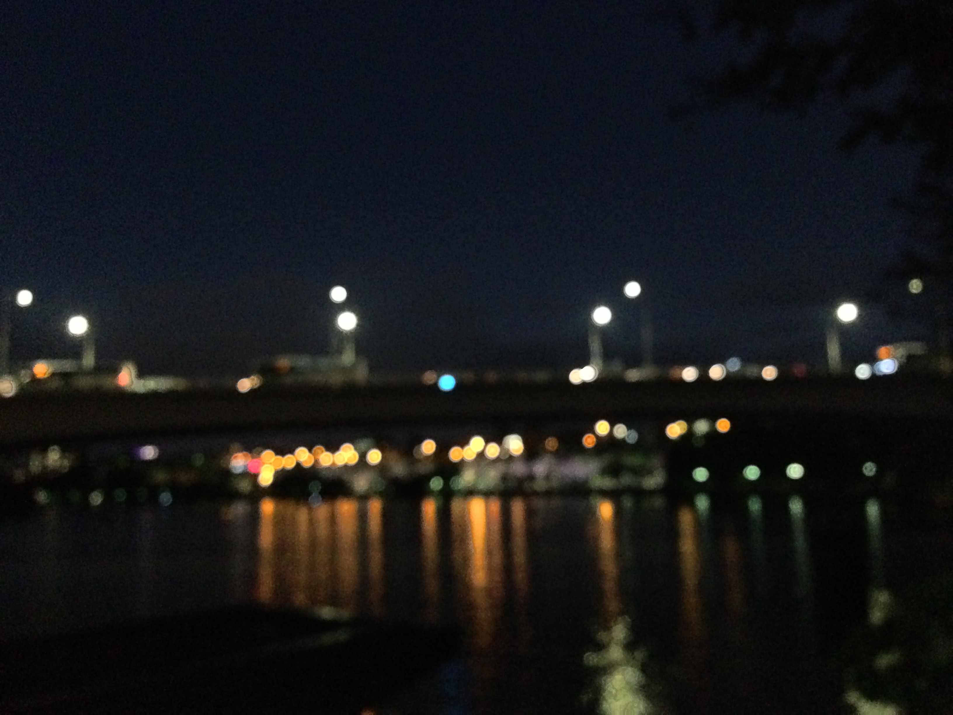 By now the night is falling fast, and the lights in the skyscrapers opposite are beginning to turn on one by one. The number of visitors past Goodwill Bridge dwindle sharply, and pretty soon all that’s left is me and the sound of water burbling gently on the rocks. Lights are few and far between on the riverbank: what illumination there is barely enough for me to figure which path will keep my feet dry. Occasionally a pier looms into view, a great orange metal box with glaring white lights and absolutely no clientele. But pass them, and in a few steps they feel like a strange mirage in the middle of nowhere. It’s just me on this road, except for a few points when a cyclist bears down on me, bells a-blazing, and then disappearing into the night, never to be seen again.