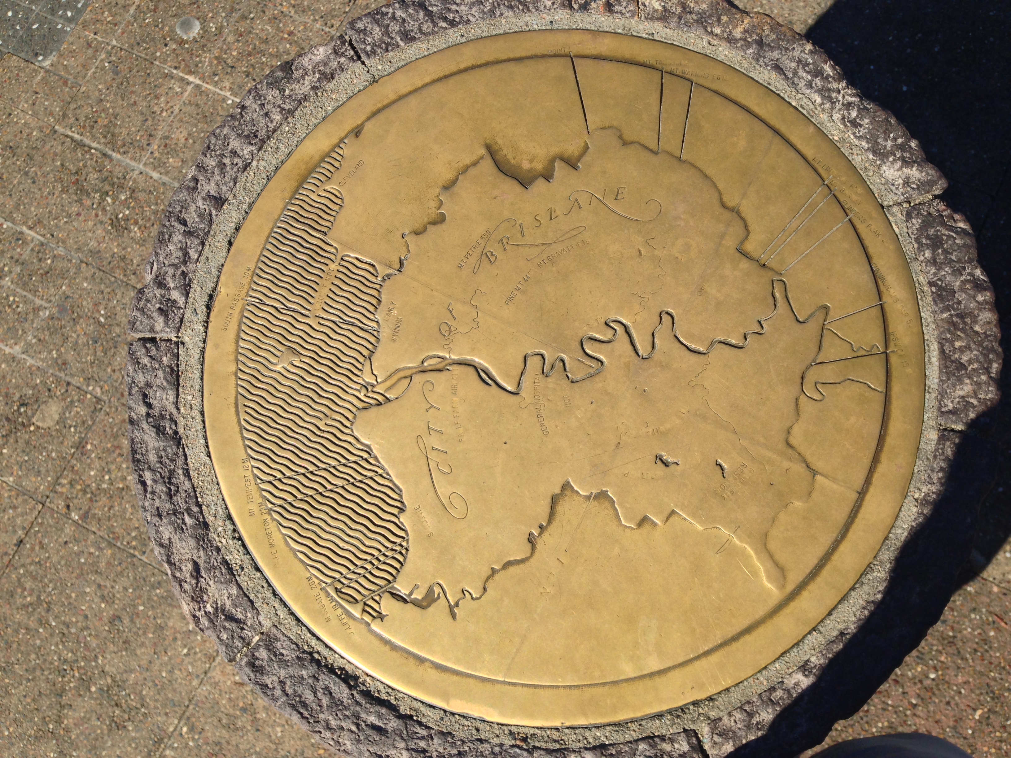 There are crowds of people here, all enjoying the view and the Sun, so it’s a while before I notice a plaque nailed down to a tree stump sitting all on its own. Once I’ve gotten used to the blinding glare that comes from the metal plate, I realize that it’s an abstraction of the City of Brisbane, with its namesake river cutting through the middle of the circle haphazardly. Abstract to the point of absurdity, it still gives me a brainwave — all this time, I’ve been overthinking Brisbane, trying to judge which bits of it are good and which are bad. But Brisbane’s just a canvas, really, a cityscape on which you project yourself. What you see in it reflects what you’re feeling in it right then. Just sit down and enjoy whatever it offers your way.