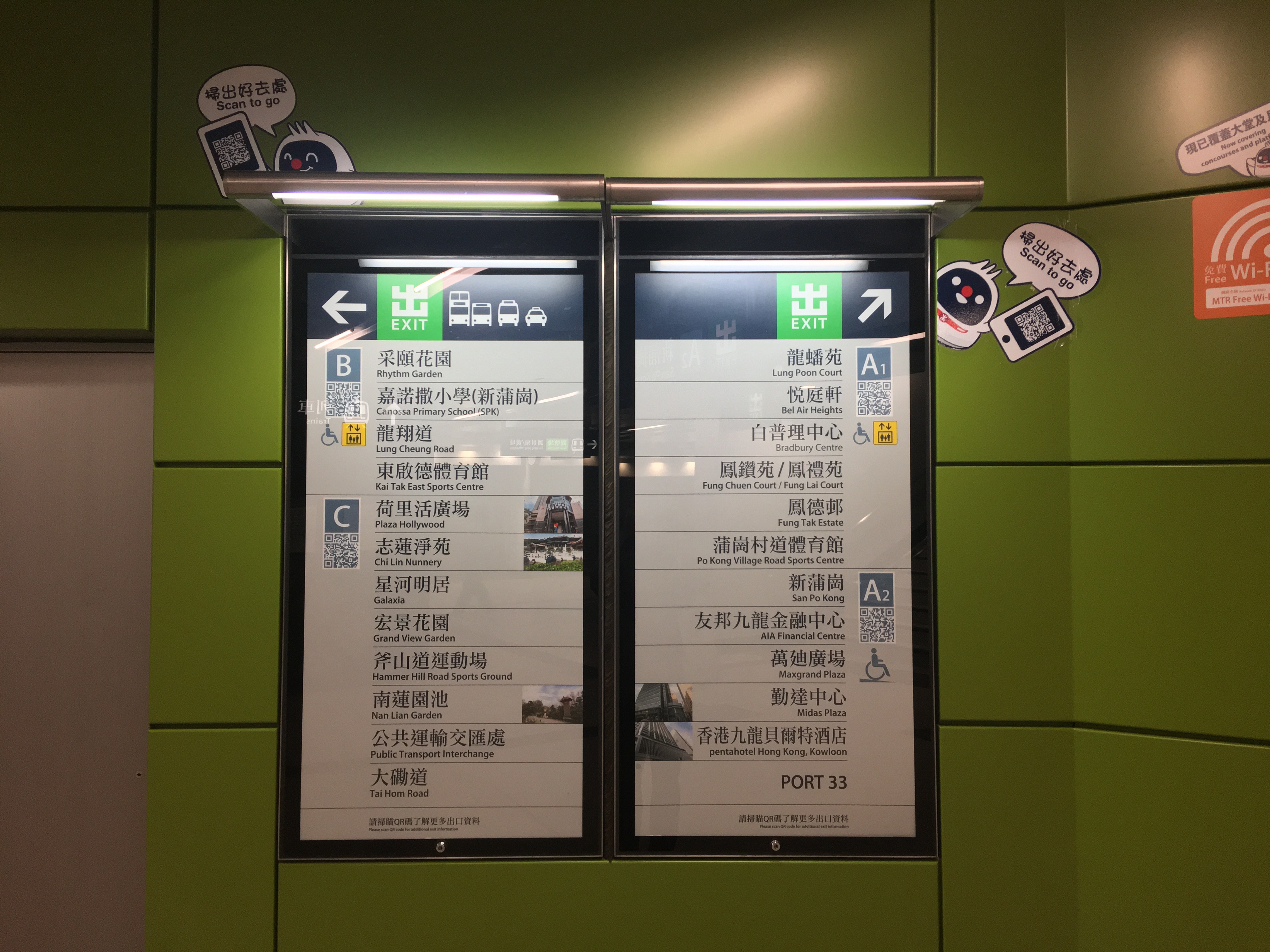 So letโs walk on, see what comes after the happy ending the KTL created. Having burrowed through the entire transport interchange, causing our lungs permanent damage, we emerge into the sunshine of Diamond Hill. On the other side of Lung Poon Street, another exit beckons: this one is smaller, flatter, somewhat less assuming. Letโs go back in: this freezing January air is cutting our cheeks. We descend into the bowels of the station, inhaling once more the slightly heady mix of dust and cloth and construction work that MTR stations always seem to have. (Thatโs the great thing about the MTR: it never smells of piss the way London or New Yorkโs systems do.) The traffic of Highway Route 7 thunders above our heads, but itโs the sound of the escalators and the announcements that echo through this squat, emerald tunnel — hold the handrail, take the lift, donโt keep your eyes only on your mobile phone. Then we come to a fork in the road.