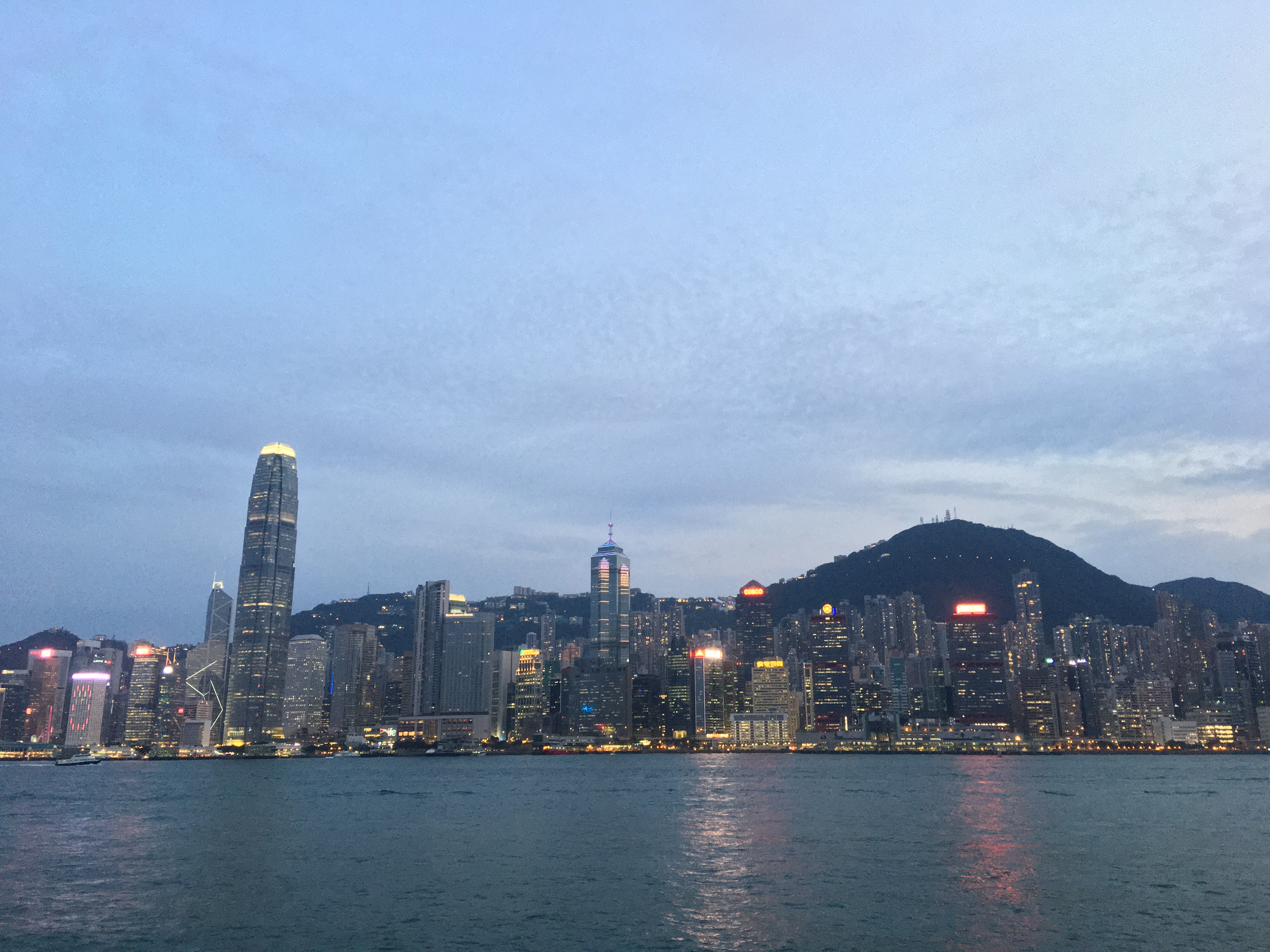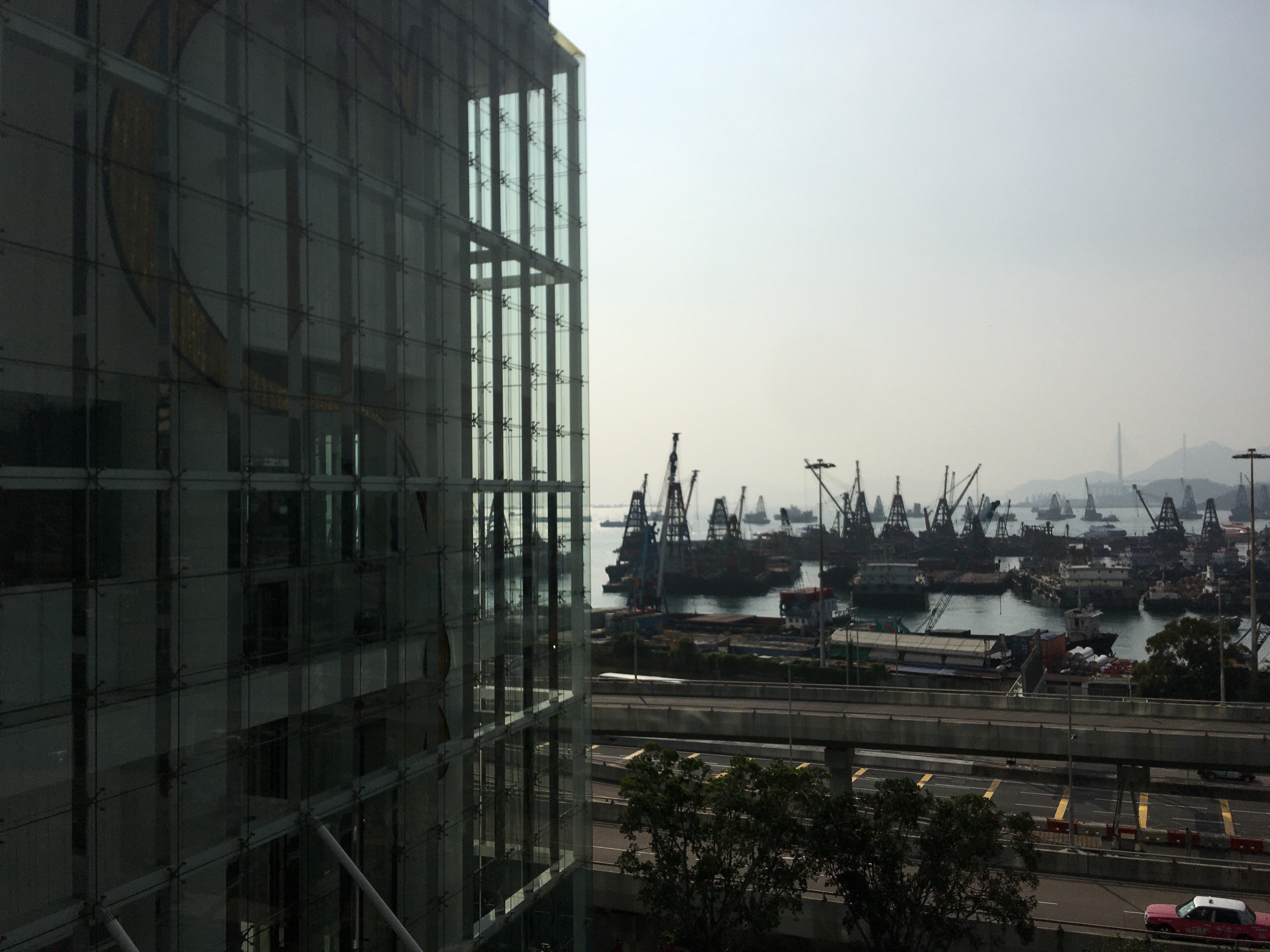 My favourite part about this whole place, though, comes when we walk up the steps towards the ICC, that high structure that holds everything. Itโs the tallest building in Hong Kong, so I feel itโs no exaggeration to say that it looms way above you, almost sticking into the clouds (and on a cloudy day, it really does). The Ritz-Carlton Hong Kong is situated up there, and everytime I see this building an absolutely cringey image from a documentary pops into my mind — that of Richard E. Grant leaping excitedly into Lady Gagaโs bed. (She was not in it at the time, but still.) Turn around, and in the shadow of that giant tower we have a couple of seats made of planks, and a platform from which you can overlook the W Hotel, the Western Harbour Crossing and the typhoon shelter beyond that. At night, when the lights turn on and the roar of traffic is the only thing you hear, when the ICC is nothing but a pillar of white LED, this place becomes awesome, infinite layers of darkness evoking infinite layers of mystery and romance. Every time I have dinner with friends here, I make sure to take them over to this place. You can keep your Peaks and Lion Rocks, this is the best view Hong Kong has to offer.