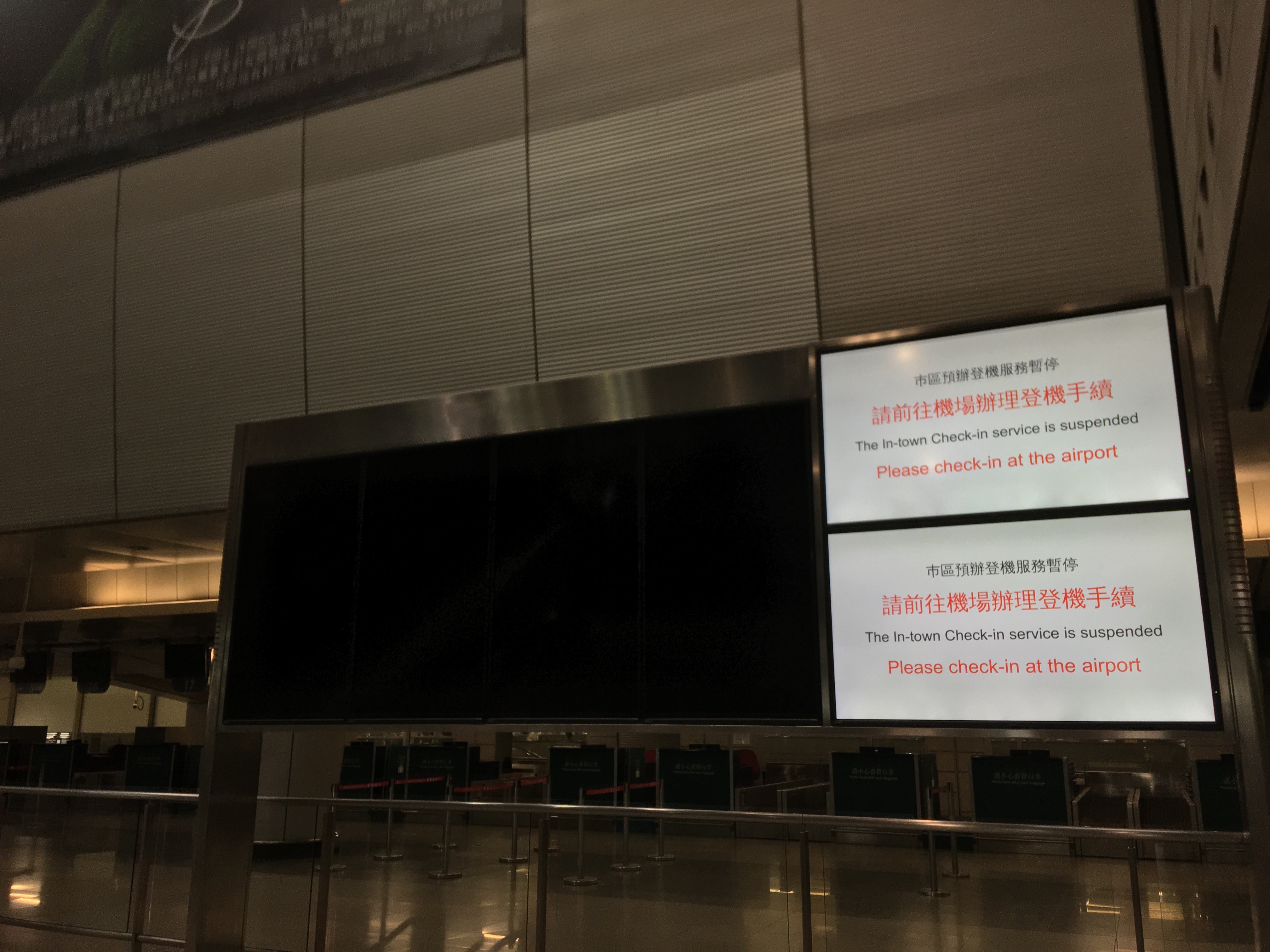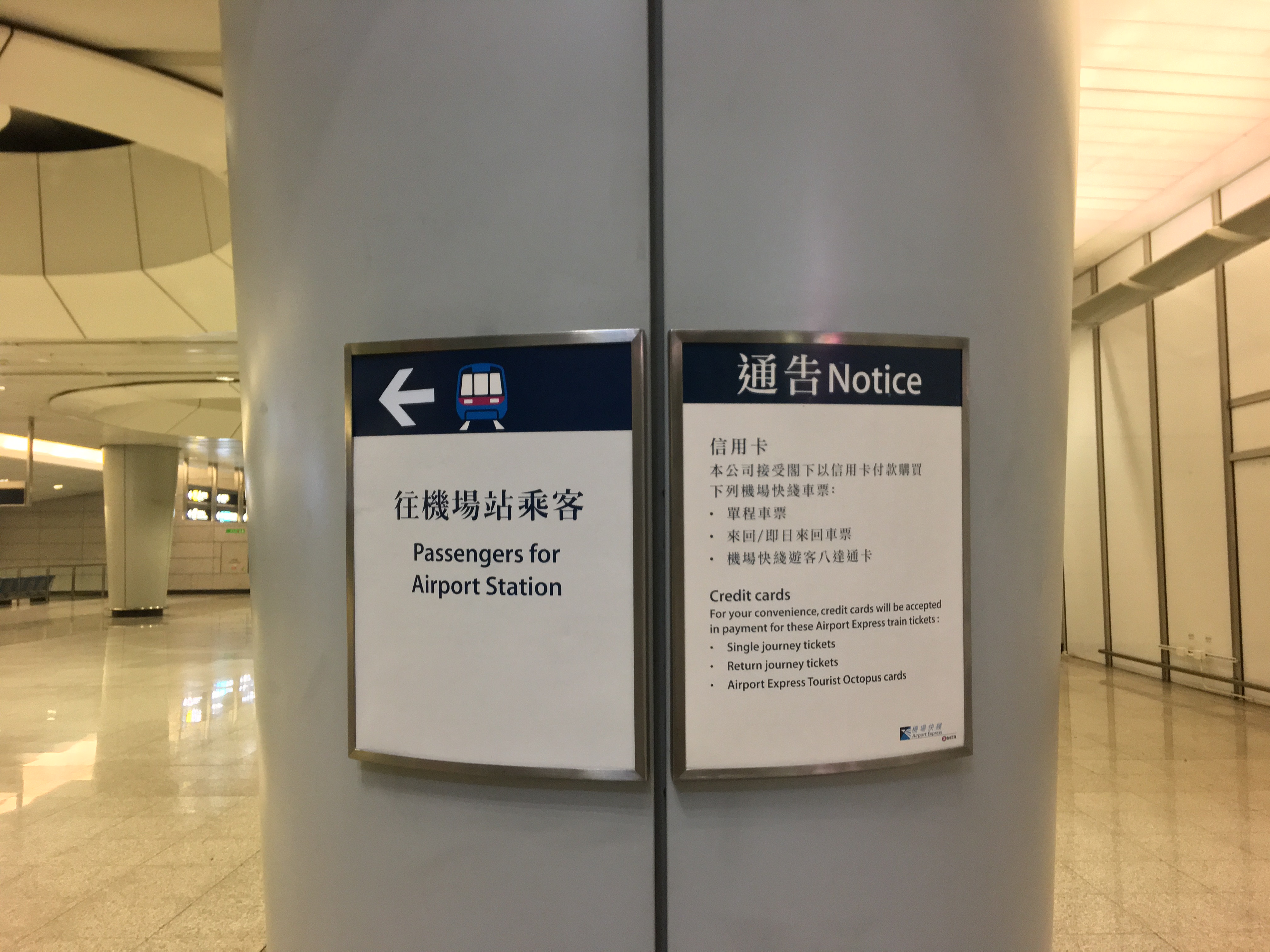 To answer that question, we must try and place ourselves in the shoes of these travellers. We find the Airport Express platforms and head down. The signs do not look good.