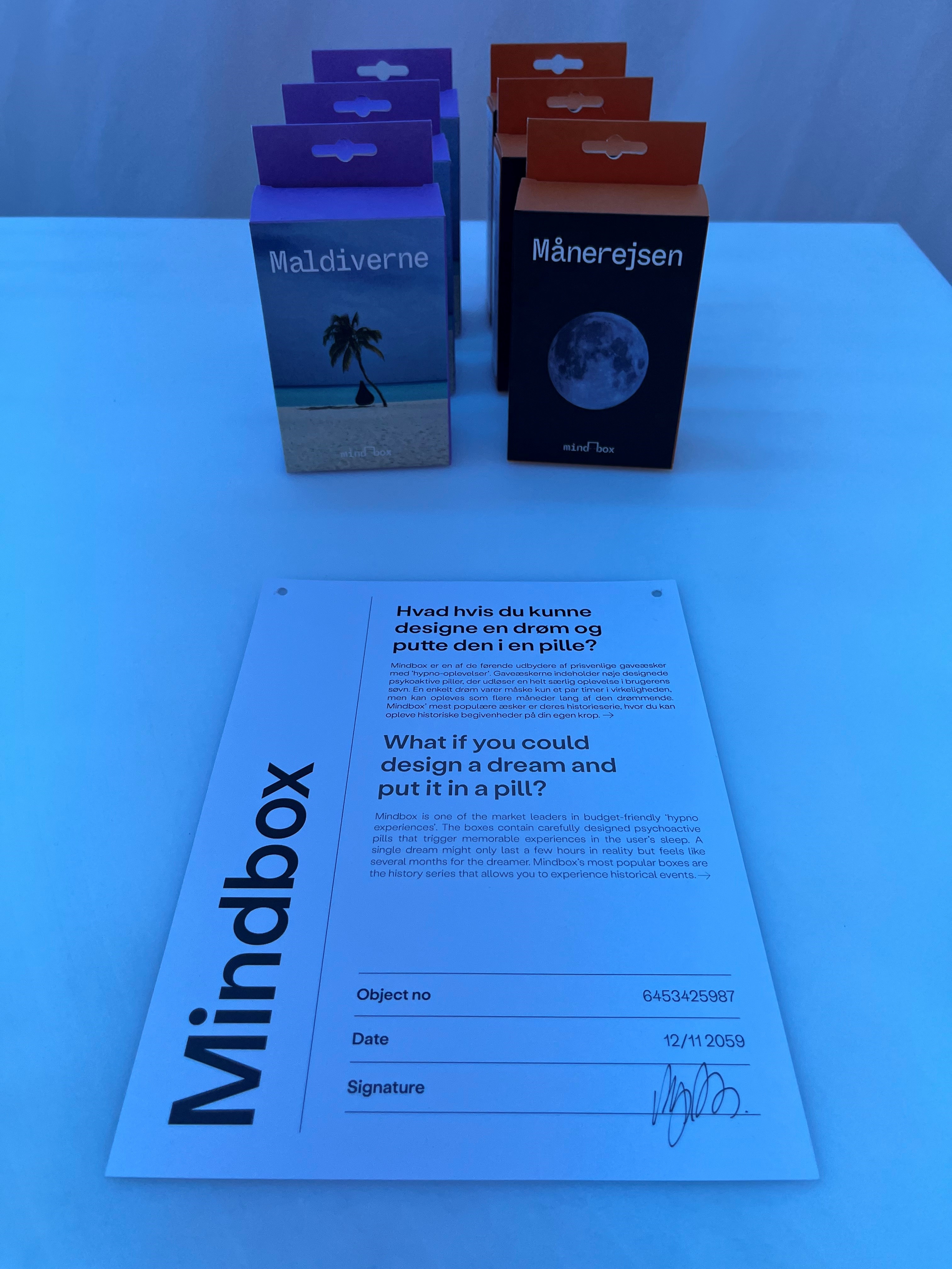 But the museum’s also eager to remind you of how design isn’t limited to the realm of the physical — behind every good design, they say, lies a certain philosophy or a certain idea. I first catch a glimpse of this philosophy after a section on 18th century Danish metalwork; turning the corner, I step into a wide, empty hallway, furnished with nothing except the exit on the other side. A neon sign just beyond the doorway, orange against the bare white of the walls, loudly proclaims: “THE FUTURE IS PRESENT”. Step past that into the next room, where I am suddenly confronted by a barrage of questions. “What if you could design a dream and put it in a pill?” asks one panel. “What if you could vaccinate yourself with emotions?” Any notions that this is just pie-in-the-sky chatter is dispelled by said pills and said bottles of medicine, staring innocently up at the visitor. It isn’t every day that you get to contemplate the prospect of injecting happiness or boredom into your veins (if you have experience otherwise, do please contact me), and I stand there for some time, suitably lost in thought.
