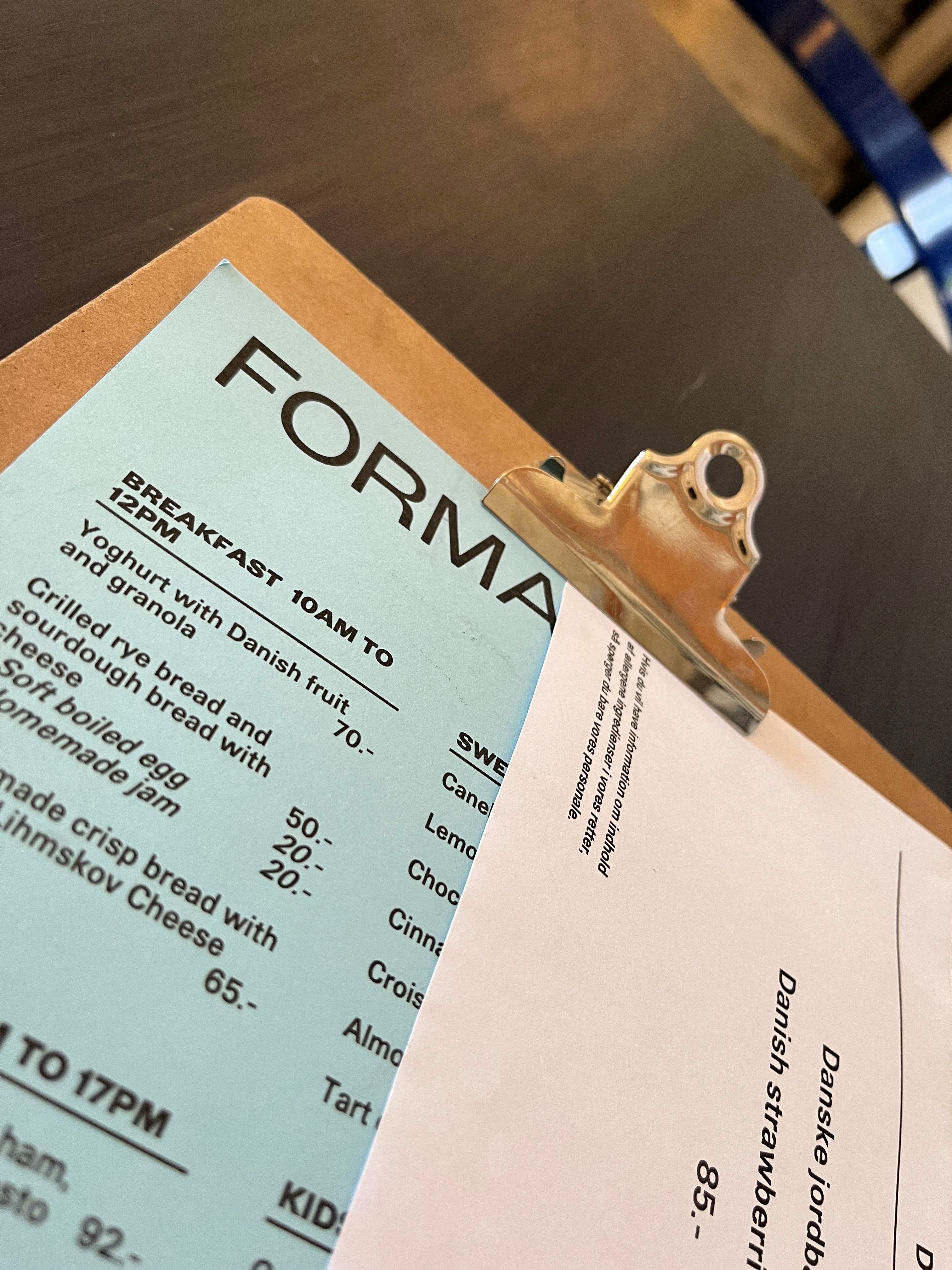 So down the Langelinie boulevard I go, shielding my eyes against the harsh sunlight. Turn away from the waters a bit and head inland, against the tide of tourists heading my way; the sounds of the sea fade away, replaced by the honk of tour buses and car horns and tourists; pretty soon I find myself in the all-too-familiar environs of Bredgade, on which lies the Marble Church Named After Frederik and the Amalienborg Complex Where Queen Margarethe Does Not Currently Live. Before I catch a glimpse of all that, however, I spot the small vertical banner for the Designmuseum (one word) flapping above my head, and peer into a small and homely courtyard, backed by yet another stately home. Inside I am greeted warmly by a silver-haired receptionist as well as the news that prices are reduced for visitors under the age of 27, which is a source of great relief to both me and my wallet. Enquire tentatively if they still have an on-site eatery, upon which the old lady at the desk smiles. “But yes of course we have a café. And it’s very good.”