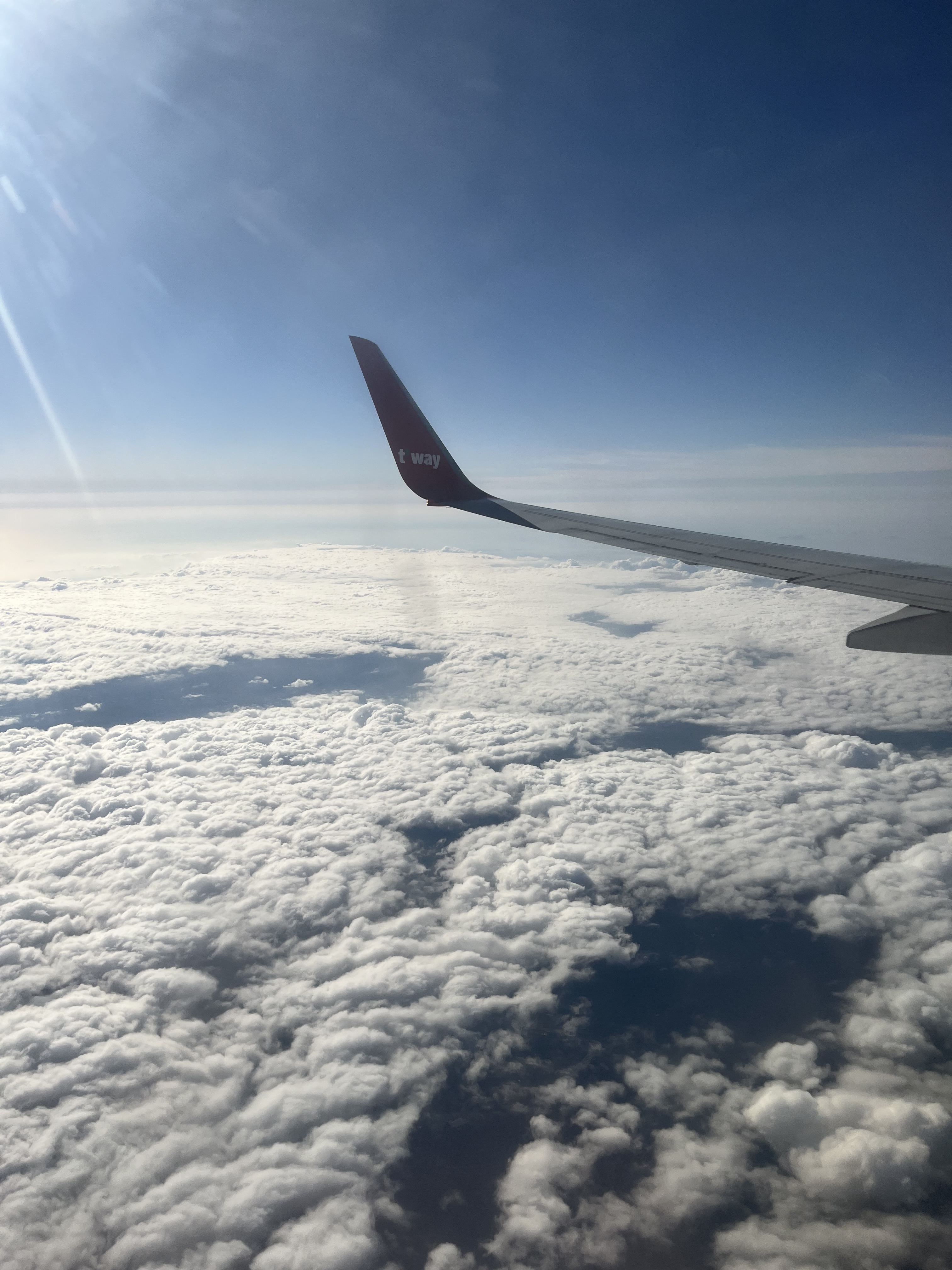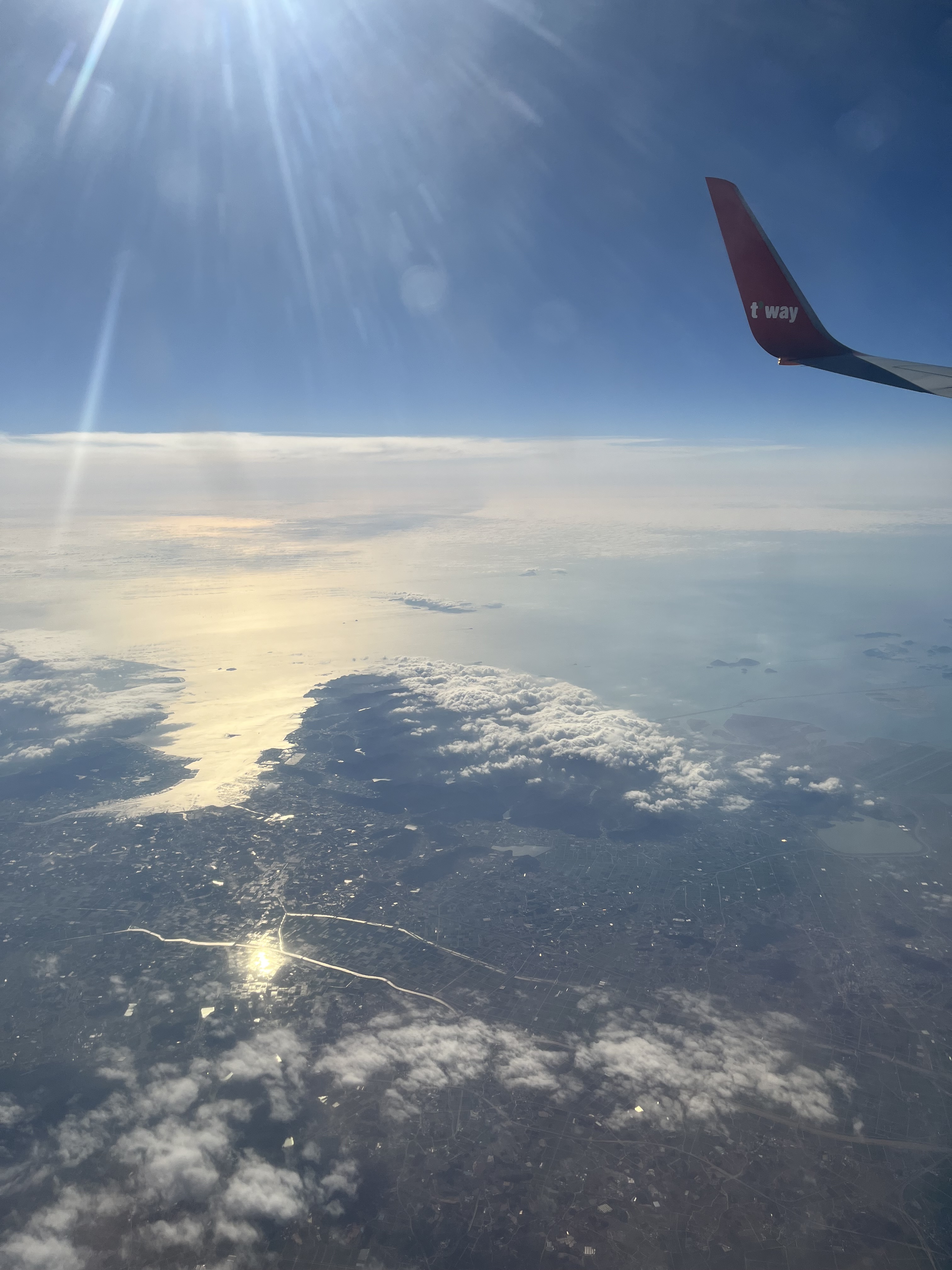 The clouds begin to gather again as we fly over the East China Sea. They speckle the skies below us, their silhouettes fooling me into thinking I’m seeing land where there’s only shadow. Soon there is nothing to see outside the window except a ceaseless stretch of blue and white; I lean against the walls of the cabin and read Dominic Sandbrook’s White Heat, while allowing myself to drift in and out of consciousness. When I wake up I peer out the window, eager to catch my first glimpse of Korea, but the clouds are still there, shielding the peninsula from view. By this point Sunny is awake, partially because I have just clambered over him and Eugene on my way to the toilet. We scrutinise a map of Korea that he has on his phone, and try to extrapolate how far we must have flown — then as if by magic, the clouds break apart temporarily, and we have our answer.