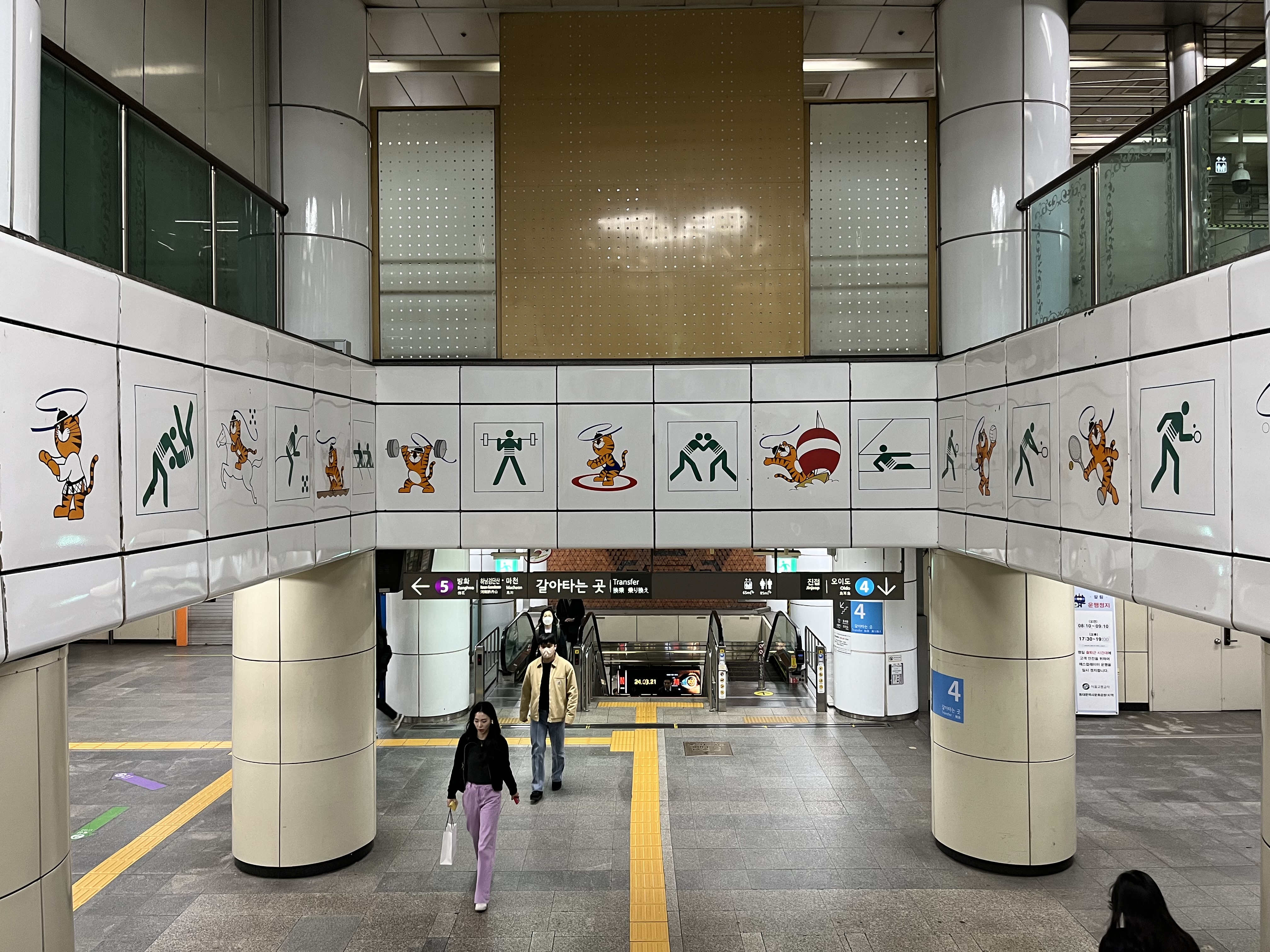 “Dongdaemun History & Culture Park station,” announce the carriage loudspeakers. Push our way out of the train and out onto the station platforms. The walls are decorated with pictures of Hodori, the cartoon tiger that was the mascot for the 1988 Summer Olympics; would have loved to stop and admire all their different poses (honestly, one of the cuter Olympic mascots we’ve had) but there’s just no time, we could miss the bus altogether, and so we rush through endless long passageways, through the labyrinth of corridors that make up this huge interchange and into the daylight once more. Loads of tour buses parked across the street — which one’s ours? We run down to the pedestrian crossing, which takes an agonisingly long time to switch to green; choose a bus at random and ask the anxious tour guide standing in front if there’s a reservation down for four boys from Hong Kong. “We’ve been trying to reach you for the past ten minutes!” she says, and we guiltily board the bus.