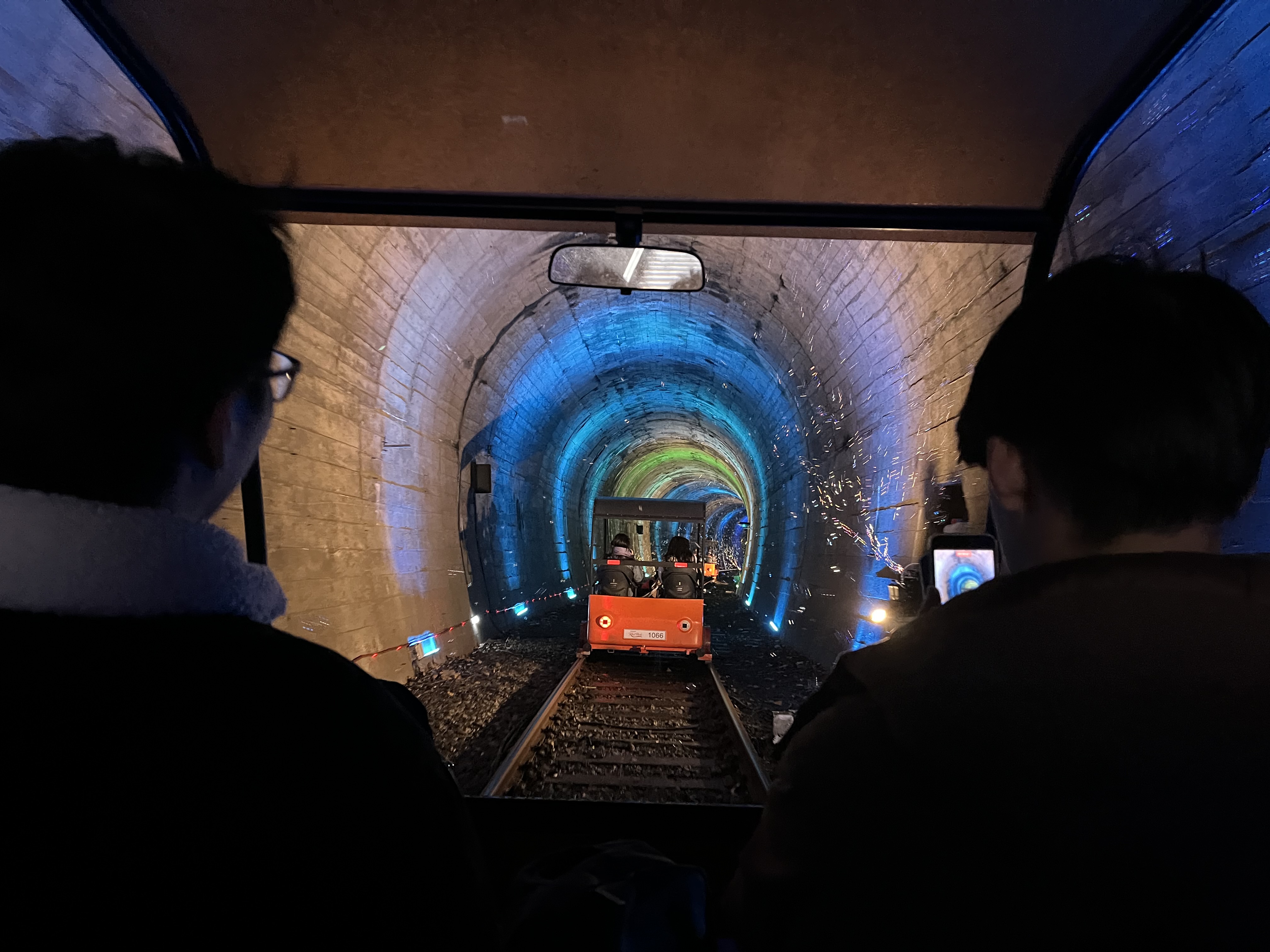 The railbike convoy slows down, partially because some knob at the front has stopped to selfie with the animals, but also because we are approaching the first of many tunnels on this ride. The second half of the ride snakes its way through a lot of mountains, and between us and our destination are at least four tunnels which date back to the line’s construction. Now, riding through old, dark, damp tunnels — some of them more than a kilometre long — may not sound like an attractive proposition, but as we pedal onwards it becomes apparent that the people in charge of the rail park have really gone above and beyond in livening it up for their clientele.