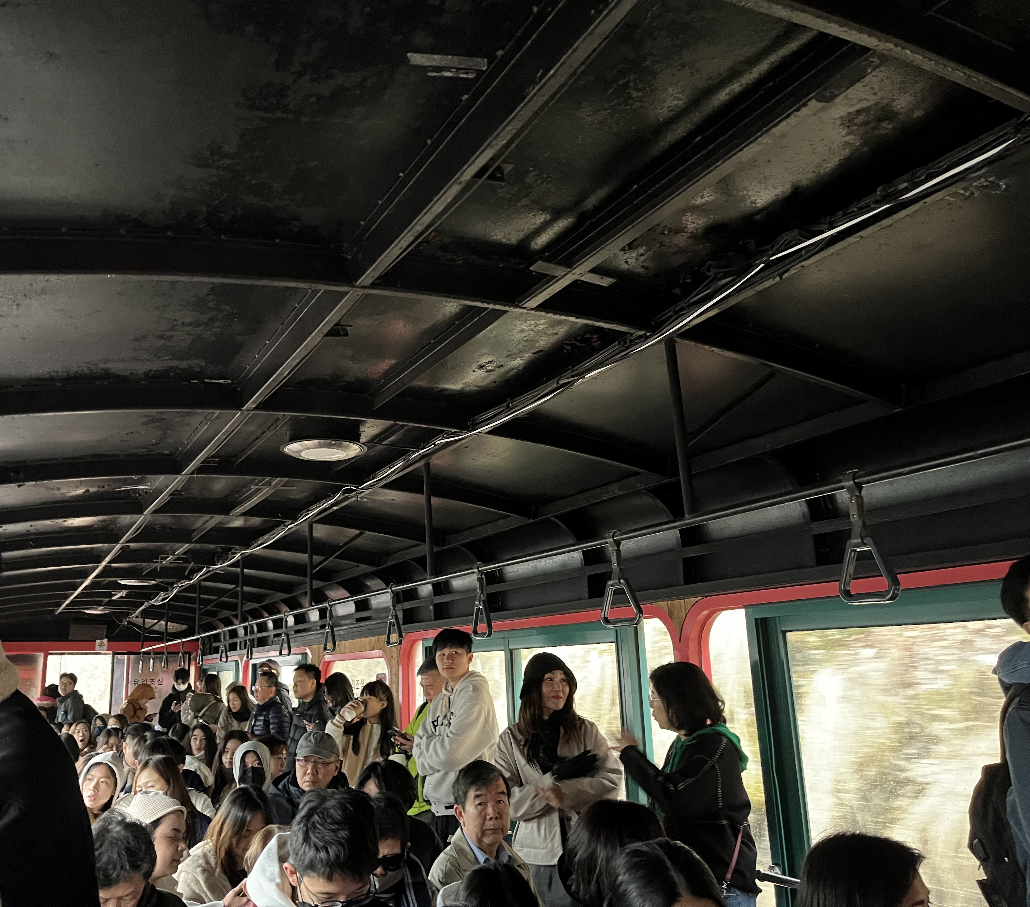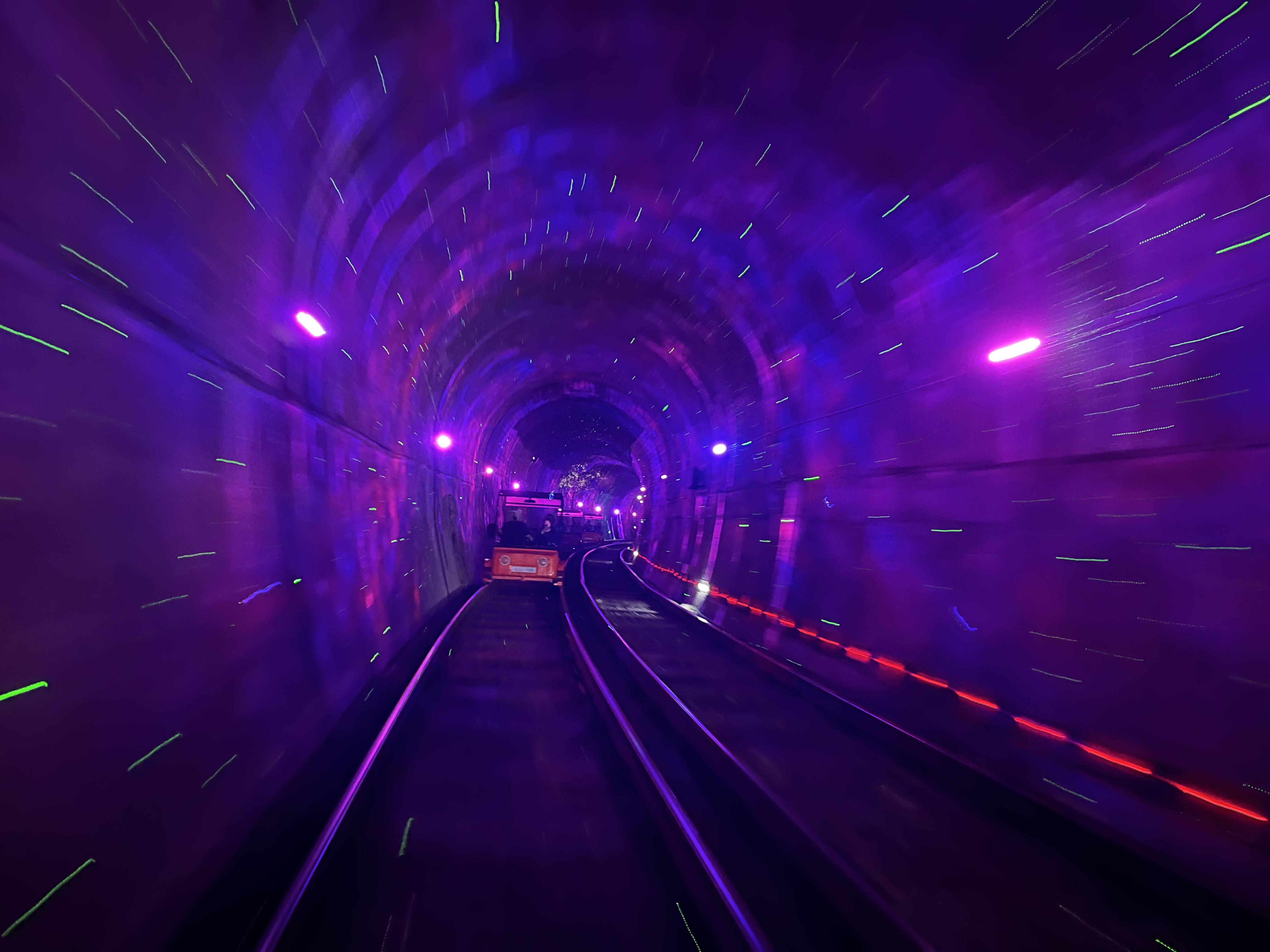 At first, they look rather low-effort: the first tunnel has nothing but white lights and a row of colourful paper windmills; the next one has more colourful lighting, but doesn’t do much else other than gently blow bubbles into our faces. But then it starts ramping up: the lighting for the third tunnel is mind-bending psychedelia, complete with dots on the wall that could easily be mistaken for fireflies, while fantasy-movie music wafts through the air — all very Aladdin’s cave. But nothing beats the last and longest tunnel, which is a complete volte-face from the last three: even before the tunnel entrance comes into view, we can already hear its raucous soundtrack blasting away, and upon entrance we are immediately half-blinded by the lasers flashing on and off in the darkness. (I guess they weren’t kidding with that epilepsy warning when we got on.) Having never been to raves before, I’m caught out by how the EDM seems to carve a direct path into my body: not only my eardrums, but also my brain, my stomach, my lungs all seem to be vibrating uncontrollably, while the stone walls around us flash white and yellow and blue and God knows how many other colours. I’m pretty sure there are raves in Seoul that are less of a sensory overload than this place, but all the same it’s a unique kind of fun, and part of me thinks as we exit that if only more railways would turn their tunnels into discotheques, public transport would become MUCH more popular.